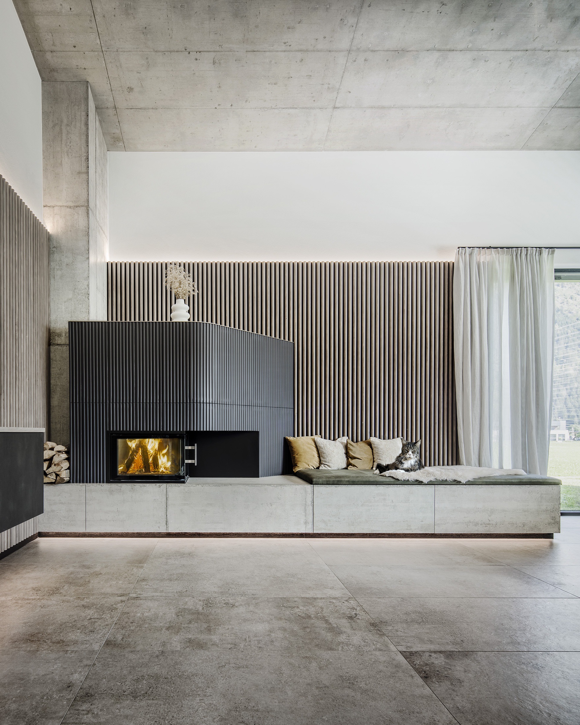 Designleistung von Feuerstelle über Vorraumbereich und Badezimmer