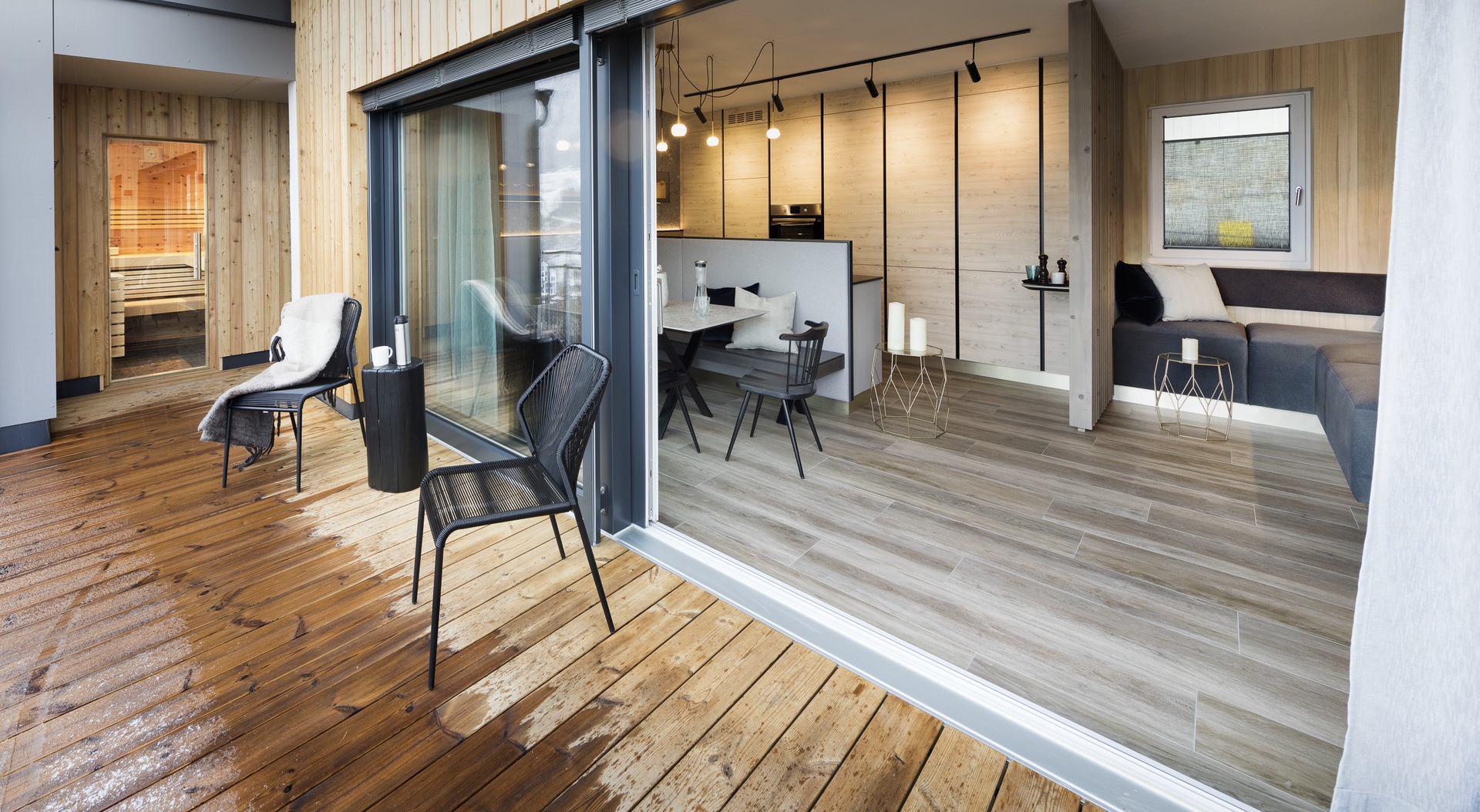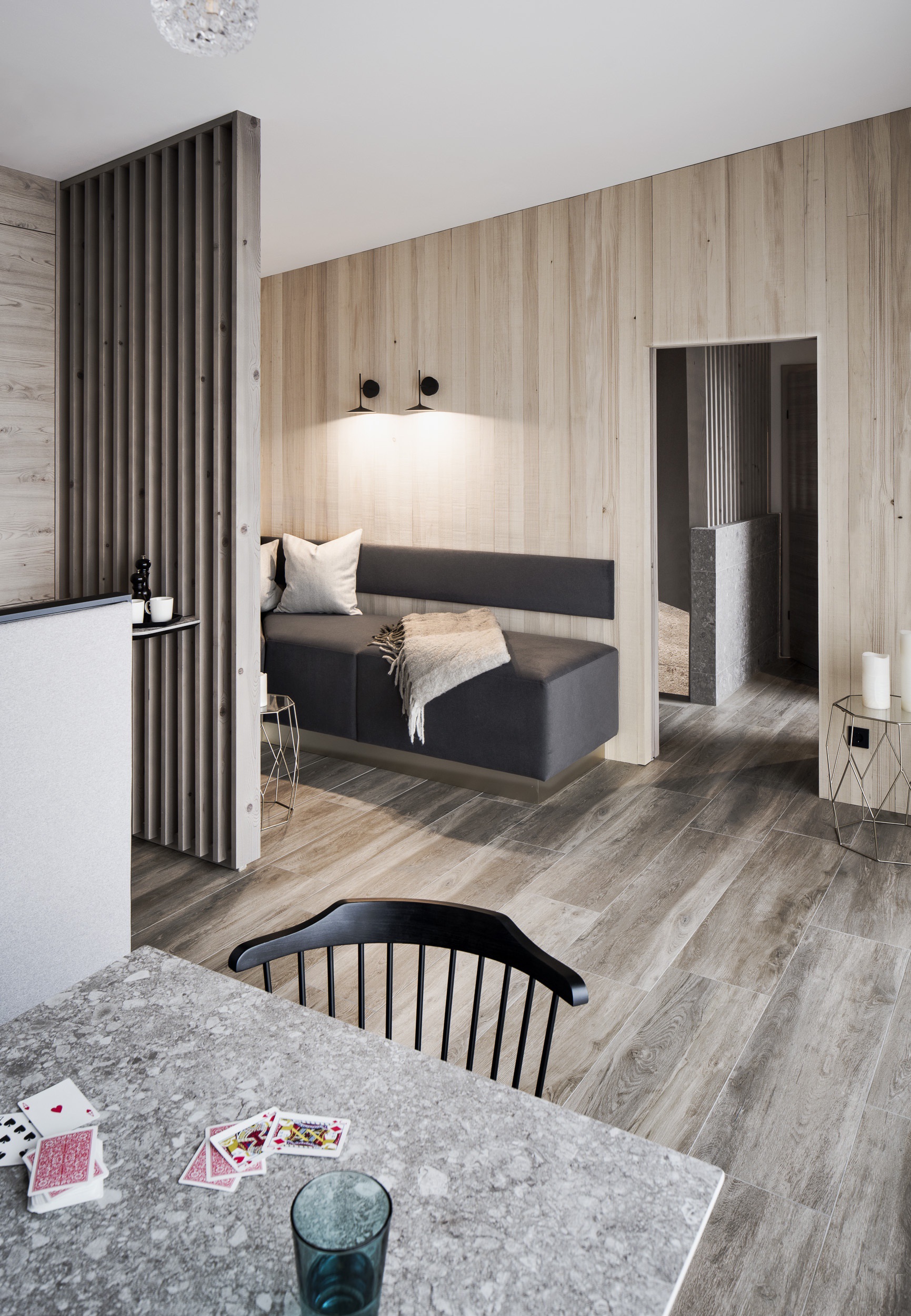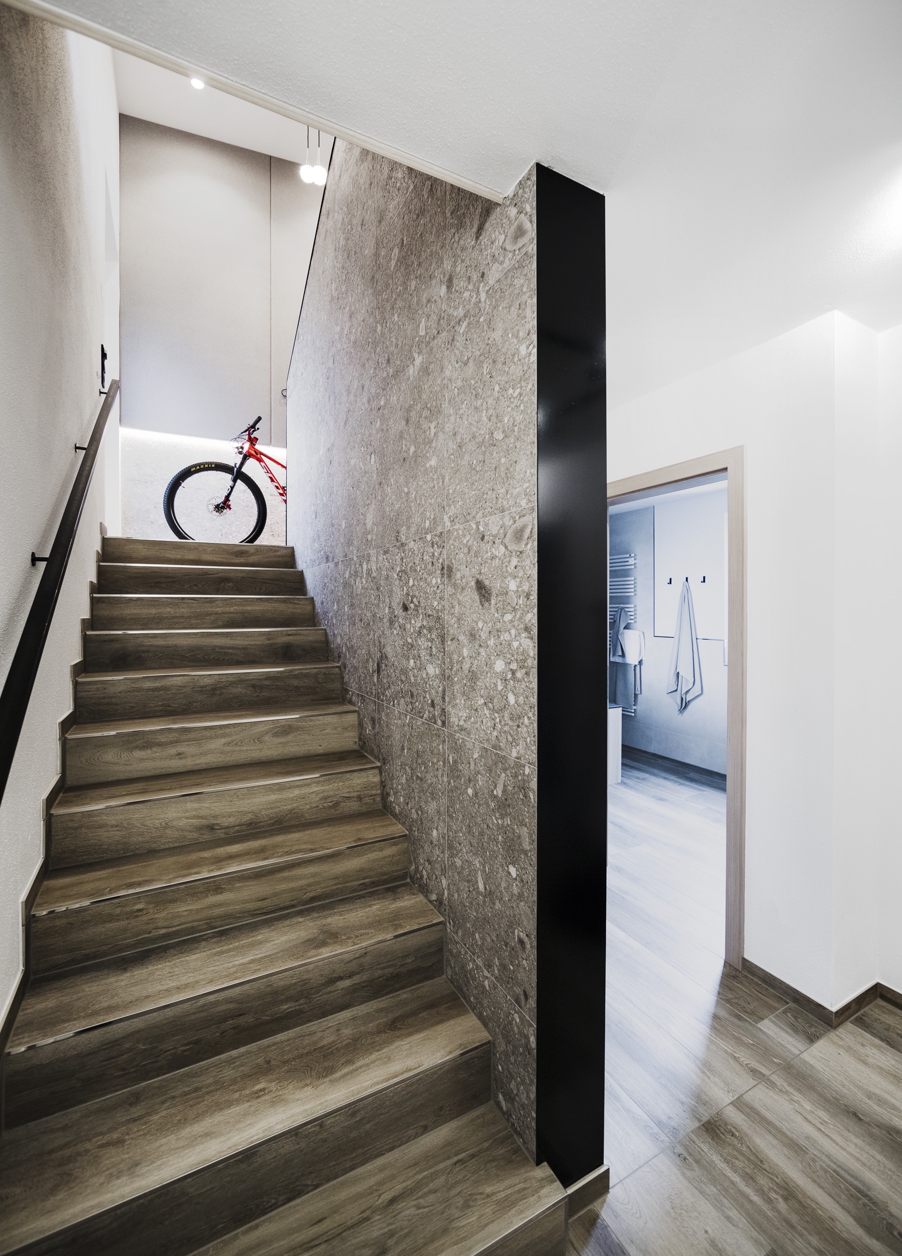 Gesamtdesign über drei Stockwerke für ein hochwertiges Urlaubsgefühl mit Bike oder auf Skiern