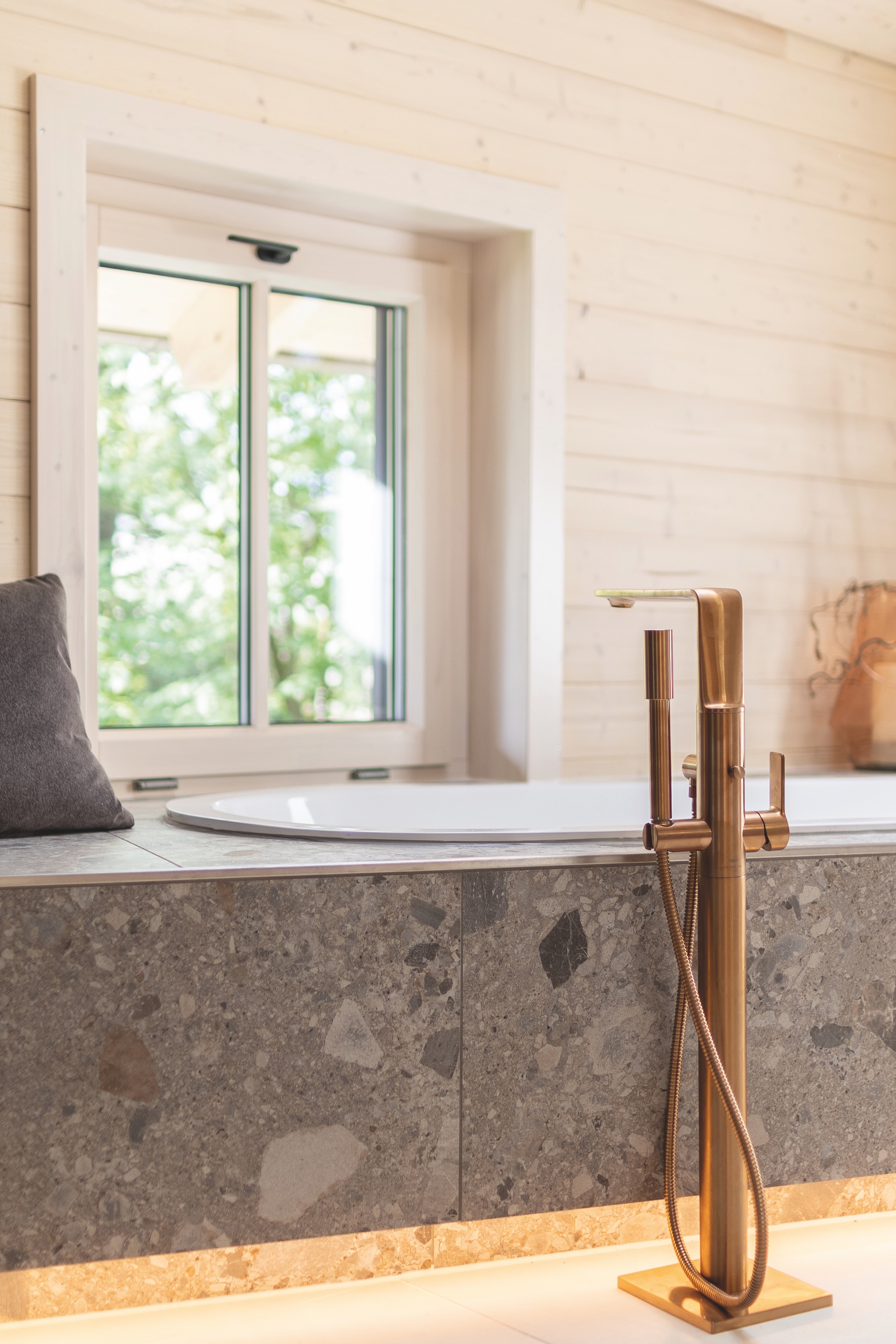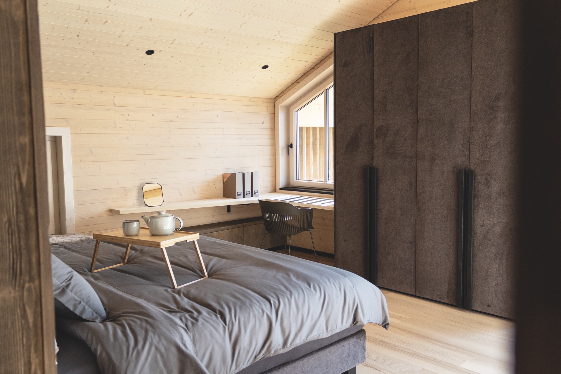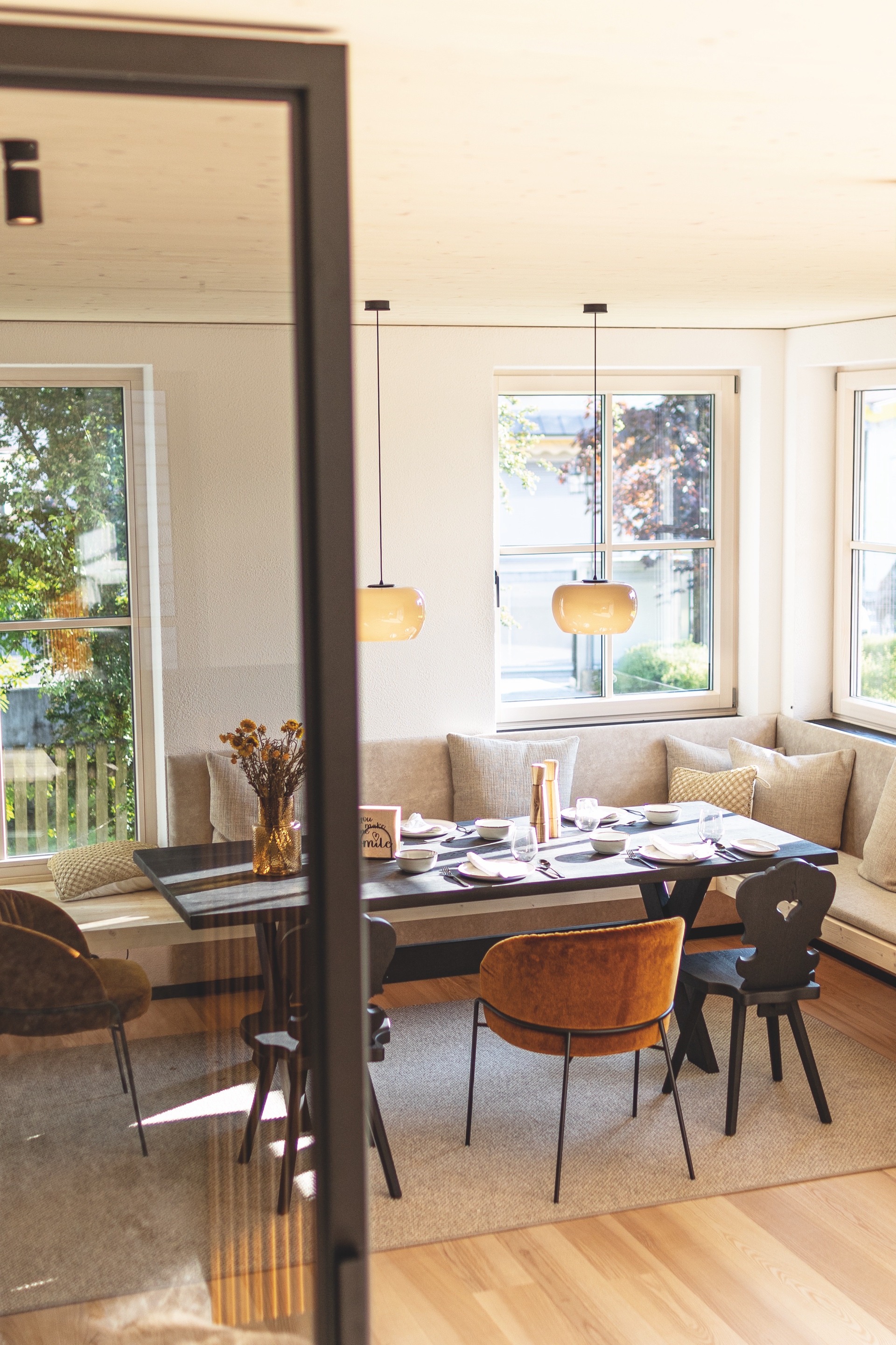 Das Haus St.Johann war das erste von vielen Sonnleitner Häusern, das für das hauseigene Ausstellungsanwesen gebaut wurde und hohen Anklang fand! Für das neue Design 2022 von diesem traditionellen Schmuckstück gingen wir sehr sachlich vor, denn der Charme vom alten Haus und der alpine Stil musste neu interpretiert werden.