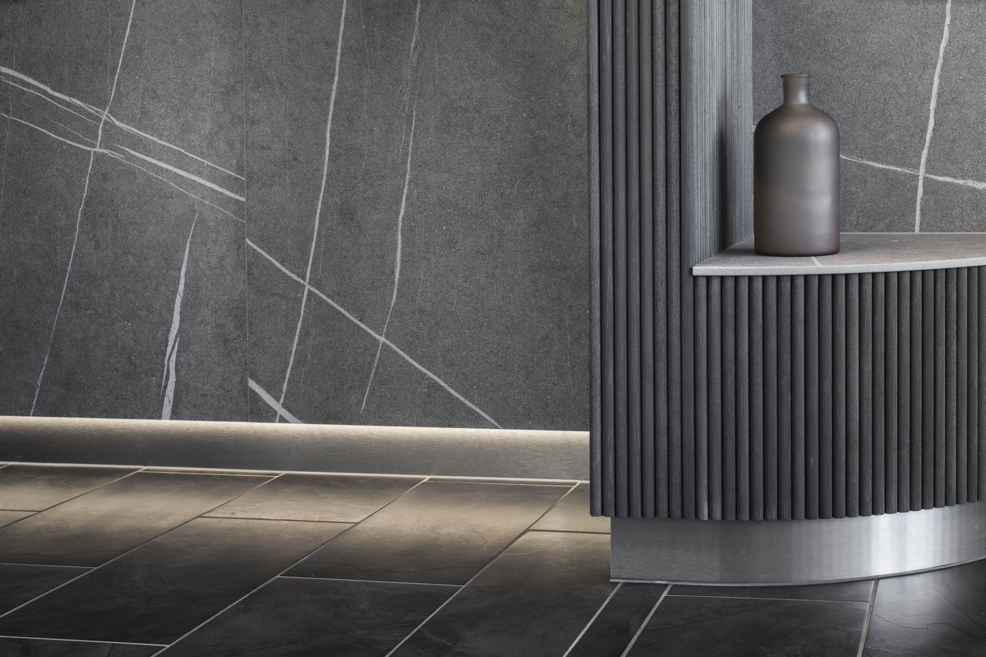 Es ist oft eine Gradwanderung, welche Materialien im Bestand bestehen bleiben können, um dem neuen Design so wenig wie möglich die Wirkung zu nehmen! Bei diesem Projekt wurde das Design bewusst nicht an Bestehendes gehalten, sondern so gewählt, dass Altes aufgewertet wird und Neues sich eigenständig präsentiert!